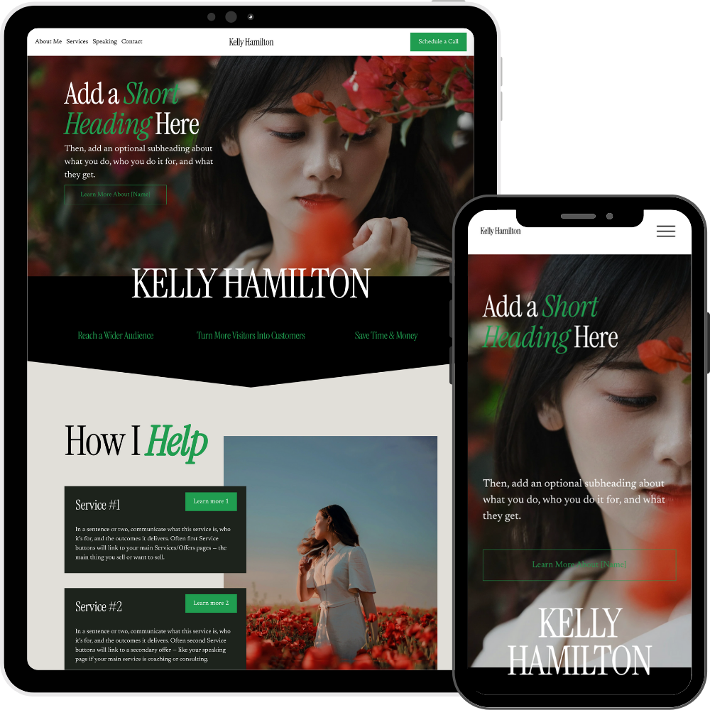 Designed especially for coaches and consultants, Kelly is a beautiful, fully responsive template designed for Squarespace 7.1.
